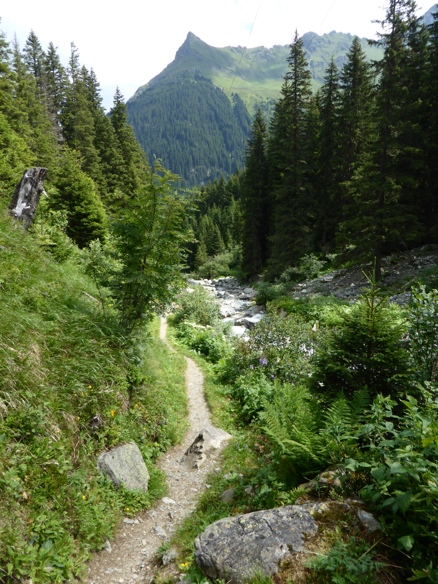 Lange, anspruchsvolle Runde hoch über dem Talboden mit fantastischem Rundblick auf die Gargellner Gebirgswelt. Wald- und Bergwege, Schotter.