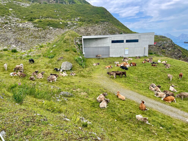 Auf der Alpe verbringen Milchkühe, Jungvieh, Kälber, Hühner, Enten und Schweine ihre Sommerfrische.