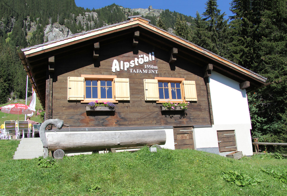 Das Alpstöbli ist ein kleines idylisches Berggasthaus auf 1.550 m, in dem Du vom Alpstöbli-Team mit Alpkost und kleinen Schmankerln verwöhnt wirst. Die Auffahrt ist mit der Tafamuntbahn von Partenen recht rasch und bequem möglich. "Klein, aber fein" ist hier das Motto. In familiärer Athmosphäre bleibt dieser Tag mit Sicherheit unvergesslich. Auf der Sonnenterrasse genießt man den Ausblick in die herrliche Bergwelt, während die Kinder am Spielplatz toben.