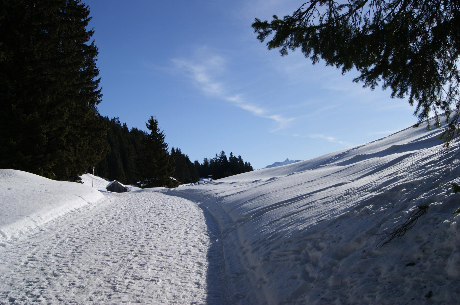 Tages-Wanderrucksack (ca. 20 Liter) mit Regenhülle, bequeme und wasserdichte Winterschuhe oder feste Wanderschuhe, ggf. Grödeln und Gamaschen, warme und wetterfeste Kleidung im Mehrschicht-Prinzip, Mütze/Stirnband, Schal, Handschuhe, Sonnenund Regenschutz, Proviant und Trinkwasser, Thermosflasche mit Heißgetränk, Erste-Hilfe-Set, Taschenmesser, Handy, ggf. Stirnlampe, Kartenmaterial, ggf. Teleskopstöcke