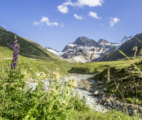 Der Weg führt Dich entlang des türkisblauen Silvrettasees, hinein ins das Ochsental, in Richtung Wiesbadener Hütte. Im Blick hast Du dabei immer den spektakulären Piz Buin mit einer Höhe von 3.312 Metern und somit der Höchste Berg Vorarlbergs. Nach ca. 2 Stunden Gehzeit kommst Du bei der Wiesbadener Hütte an, wo Du Dich mit regionalen und gutbürgerlichen Speisen stärken kannst. Natürlich ist es auch eine Überlegung den Einkehrschwung beim Rückweg der Grünen Kuppe zu machen.