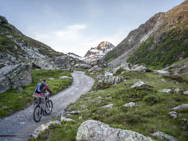 Diese Tour führt an den Fuße des imposanten Ochsentaler Gletscher im Silvretta Gebirge. Diese Mountainbike Tour wird in erster Linie von Bergsteigern als Bike & Hike/Climbing Tour genutzt. Der Anstieg zur Wiesbadener Hütte ist sehr steil und teiweise nicht bzw. kaum fahrbar und eignet sich daher nicht für Ausflugsfahrten. Zudem sind speziell am Silvrettasee sehr viel Wanderer unterwegs. Hier sind die speziellen Hinweise zum Verhalten zu beachten - siehe unter weitere Infos.