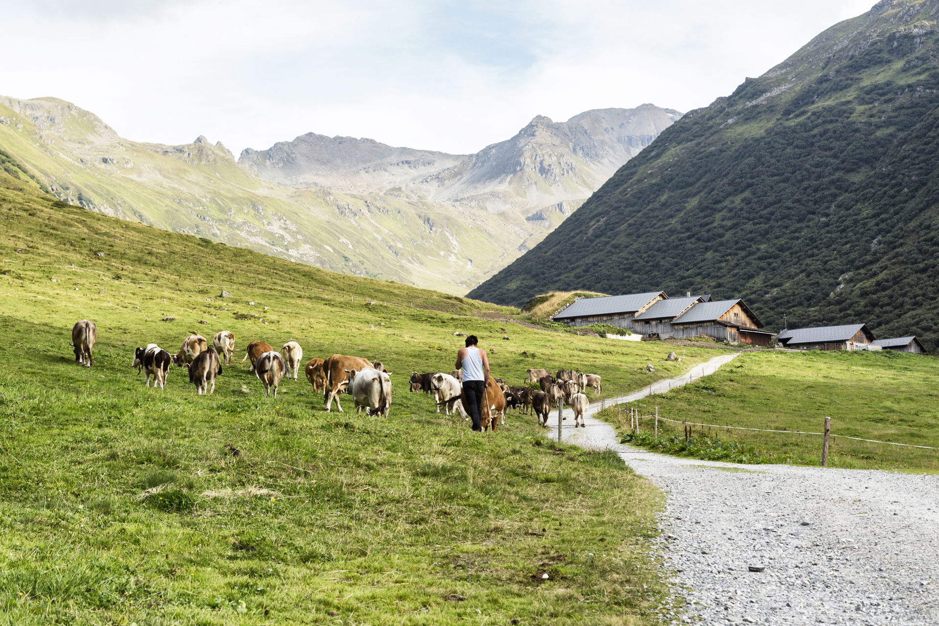 Mittellange Strecke mit konstanter Steigung entlang des Vergaldabachs zur Vergaldaalpe.