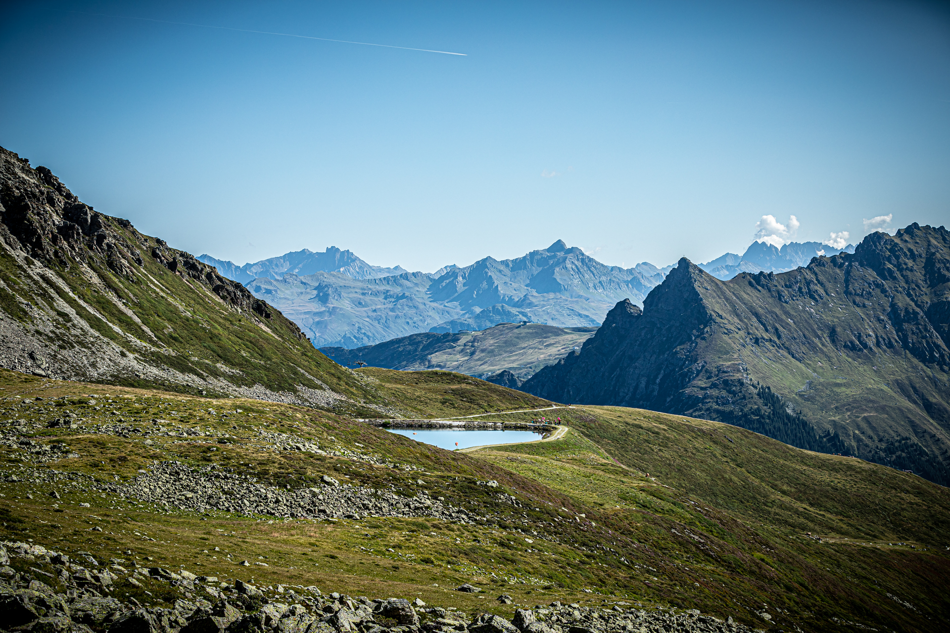 Trailrunning Ladies und Genuss- sowie Wanderladies erobern den bekannten Schmugglerpfad zwischen Österreich und der Schweiz. Auf 2.130 Metern Seehöhe oberhalb von Gargellen darf Frau die Aussicht und das Panorama genießen und die Schmuggelware in die Taschen packen. Handorgler und Alphornbläser runden das unglaubliche Ambiente ab.