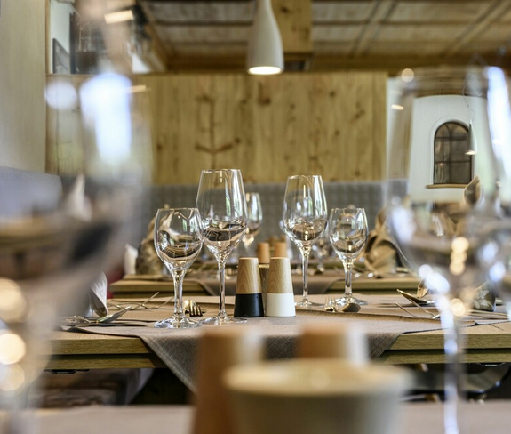 Im Rahmen der Halbpension servieren wir täglich ein frisch zubereitetes 4-Gänge-Menü. Eines der beiden zur Wahl stehenden Hauptgerichten ist stets vegetarisch. Wir kochen alles selbst und verwenden überwiegend regionale Zutaten – daher bitten wir um Anmeldung bis 10:00 Uhr.