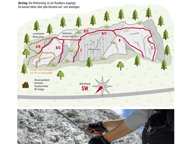 Abstieg: Der Klettersteig ist als Rundkurs angelegt, Du kannst daher über jede Variante auf- und absteigen.