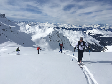 Von St. Antönien aus geht es mit dem Bus und der Rhätischen Bahn ins Skigebiet Klosters. Hier nutzen wir die Bergbahnen, um den Aufstieg ins Schlappiner Joch (2.203 m) auf rund 200 Höhenmeter zu verkürzen. Vom Schlappiner Joch führt eine lange Abfahrt über mittelsteile Hänge ins Valzifenztal und schließlich zurück nach Gargellen. Dort lassen wir die beeindruckenden Erlebnisse bei einem gemütlichen Einkehrschwung Revue passieren.
