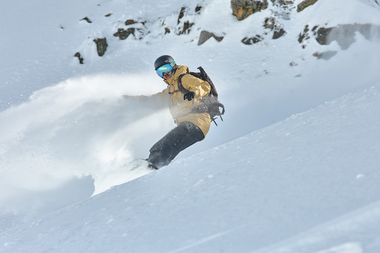 Da Samstag eine Kaltfront durchs Land rauschen sollte, wurde der Contest auf Freitag vorverlegt. Nach ca. einer Stunde Aufstieg konnten die Riderinnen und Rider ihr „Hüttengepäck" vom Freeridegepäck trennen und die Rucksäcke wurden sogleich um einiges leichter. Das Gepäck transportierten die Helferinnen und Helfer des Back on Track zur Hütte und die Karawane zweigte in Richtung Lobturm ab. Nach einem kurzem Hike stand man dann unter dem bereits von den Bergführerinnen und Bergführern geprüften Contestface. Zwei verschiedene Startplätze, viele Rinnen und Felsen ließen den Riderinnen und Ridern alle Möglichkeiten offen. Ohne Stress konnte sich jede und jeder seine Line raussuchen und dann die letzten 300 Höhenmeter zum Start in Angriff nehmen.