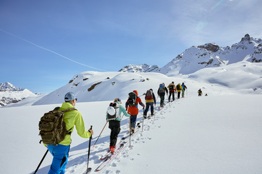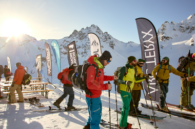 Das Einschreiben für den Contest sowie ein kurzes Briefing wurde gleich um 7 Uhr bei der Talstation der Vermuntbahn durchgeführt und anschließend ging es auch schon mit Gondel und Tunnelbus zum Ausgangspunkt des Abenteuers. Da hieß es dann: Auffellen, Piepscheck und Abmarsch.