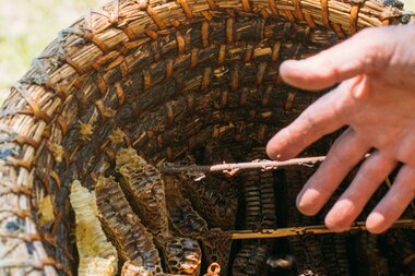 Am Ende der Wanderung kommen wir in Schruns an. Dort stehen Harrys Bienenstöcke. Erst erklärt er uns, wie Bienen gezüchtet werden und wie der Imker zu seinem Honig kommt. Wir waren ganz überrascht – ein Bienenstock beherbergt etwa 50.000 Bienen und jede Biene fliegt etwa drei Mal täglich los, um Nektar und Pollen zu sammeln. Wir wollen uns die Honigbienen aus der Nähe ansehen und ziehen uns einen Imkerhut über. Wir schauen in die Bienenstöcke und in einer Wabe entdecken wir sogar eine Bienenkönigin. Während die Arbeiterbienen nur etwa sechs Wochen leben, kann eine Königin etwa fünf Jahre alt werden. Dabei legt sie über den Sommer etwa 1.500 Eier pro Tag und verbraucht dabei unglaublich viel Energie. Harry ist Imker aus Leidenschaft und das merkt man auch. Wir haben viele Fragen und er beantwortet sie alle, bevor die Imkerwanderung zu Ende geht.