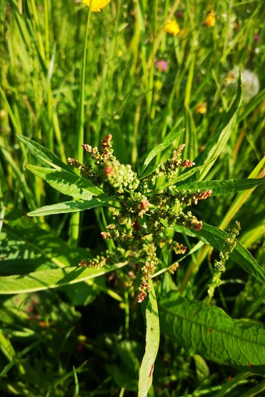 Gemütlich esse ich meine Jause und sehe dem zufriedenen Montafoner Braunvieh beim Grasen zu. Die saftigen und blumenreichen Bergwiesen scheinen den Kühen zu schmecken. Nur den Sauerampfer lassen sie stehen, ihr Instinkt sagt ihnen schon, dass dieser giftig auf sie wirkt.  Schon in meiner Kindheit habe ich die jungen, fein säuerlichen Blätter zum Naschen zwischendurch geliebt. Sie strotzen vor Vitamin C und können zum Verfeinern von Salaten, Suppen und Saucen verwendet werden. Aus Erfahrung kann ich berichten, dass zu viel Sauerampfer zu Bauchschmerzen führen kann, trotzdem gilt Sauerampfer als Heilmittel gegen Magenbeschwerden.