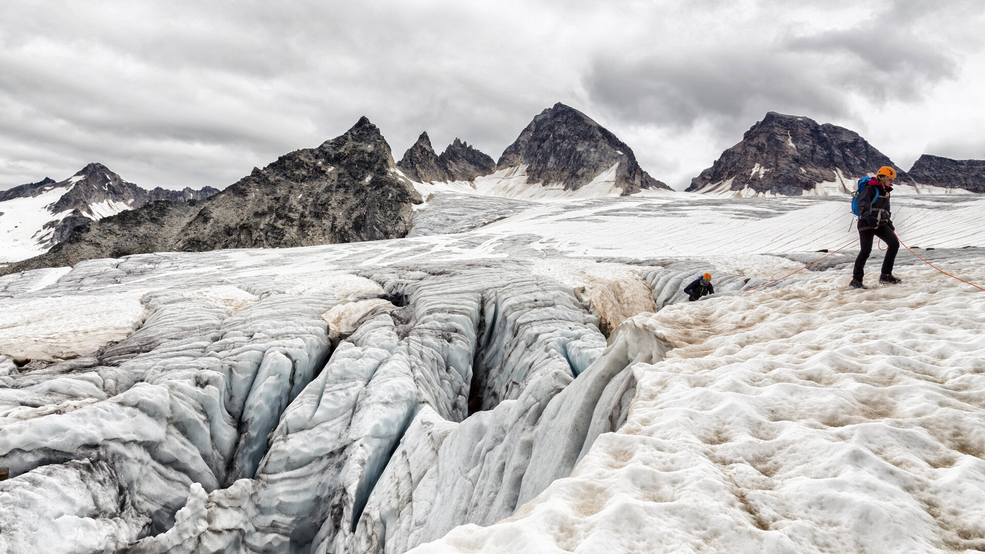 „Der Ochsentaler Gletscher, der größte seiner Art in Vorarlberg, ist seit 1850 stark zurückgegangen. Da er bis zu 150 Meter an Eisdicke verloren hat, ist dieser steiler, zerklüfteter und felsdurchsetzter geworden.“