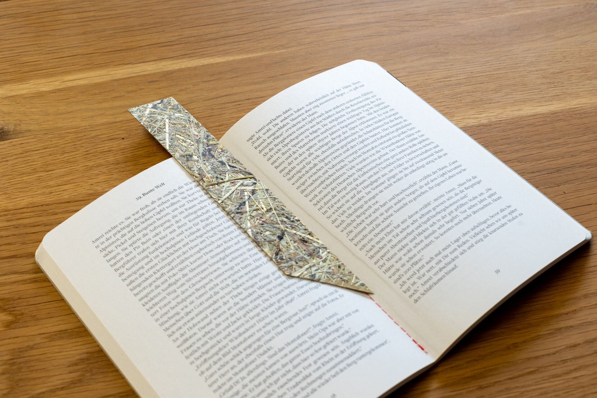 „Bei dieser Konferenz kam ich mit den Erzeugnissen der Tiroler Firma Organoid® in Berührung, die echte Naturmaterialien zu nachhaltigen Oberflächen für Wände, Möbel oder Glas und mehr klimaneutral made in Austria verarbeitet und somit gesund und nachhaltig Innenräume gestaltet“, berichtet Chien-Jen Wang, Grafiker bei Montafon Tourismus, von den Anfängen des Projekts. „Mich haben die Produkte fasziniert und gemeinsam mit Organoid haben wir die Idee entwickelt, ein Lesezeichen zu produzieren, das zu 100 Prozent aus Montafoner Heu hergestellt wird.“