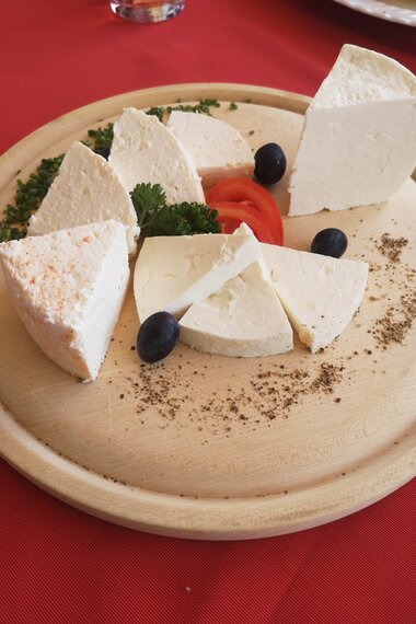 Worauf sich die gesamte Crew auf der E-Bike-Tour am meisten gefreut hat? Gute Frage! Die Antwort kommt von allen wie der Blitz geschossen: Auf die Brotzeit mit frischem Montafoner Sura Kees! Vom Senn Christoph, der gemeinsam mit seiner Frau Magdalena hoch oben im Montafon den Käse produziert. Mit einem herzlichen „Grüaß Di, wia goht’s?“ empfingen uns die Hüttenleut‘. In der Hand ein ofenwarmes Brot, belegt mit frischem Sura Kees. Herrlich! Dazu ein Glas Buttermilch – da kann man nur noch sagen: „An Guata!“