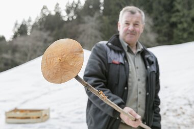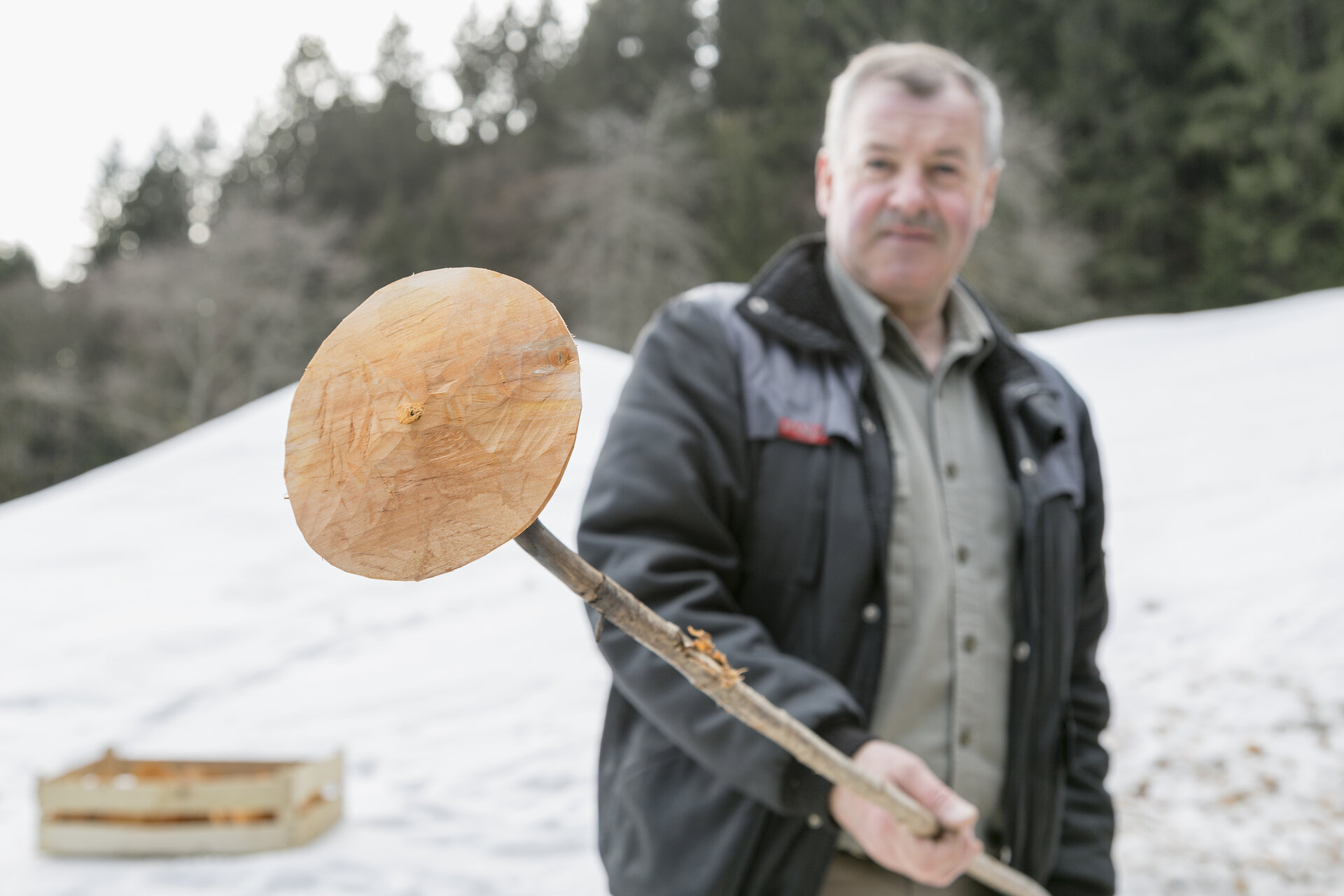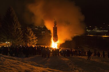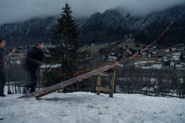 Ein einzigartiges Stück Montafoner Kulturgeschichte ist das jahrhundertealte Scheibenschlagen in Gortipohl. Dabei wird eine handgefertigte Scheibe über dem Kopf schwingend über einer Art Holzbank, dem sogenannten Scheibenstock, abgeschlagen. Unter dem Applaus der Schaulustigen zieht die glühende Scheibe einen leuchtenden Bogen am dunklen Nachthimmel. „Das Scheibenschlagen ist jedes Jahr ein großes Ereignis im Dorf. Bei uns kann jeder mitmachen. Viele bringen ihre eigenen, selbstgemachten Scheiben mit. Es ist schön zu sehen, dass auch wieder sehr viele Jugendliche mit Begeisterung dabei sind“, beschreibt Jürgen das Wiederaufleben des Brauchtums.