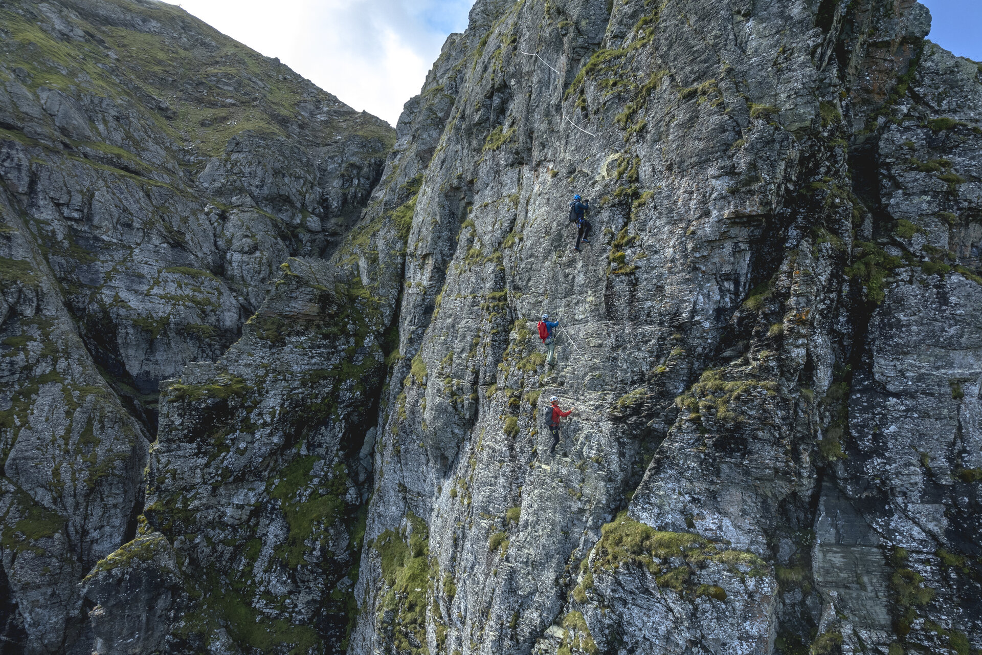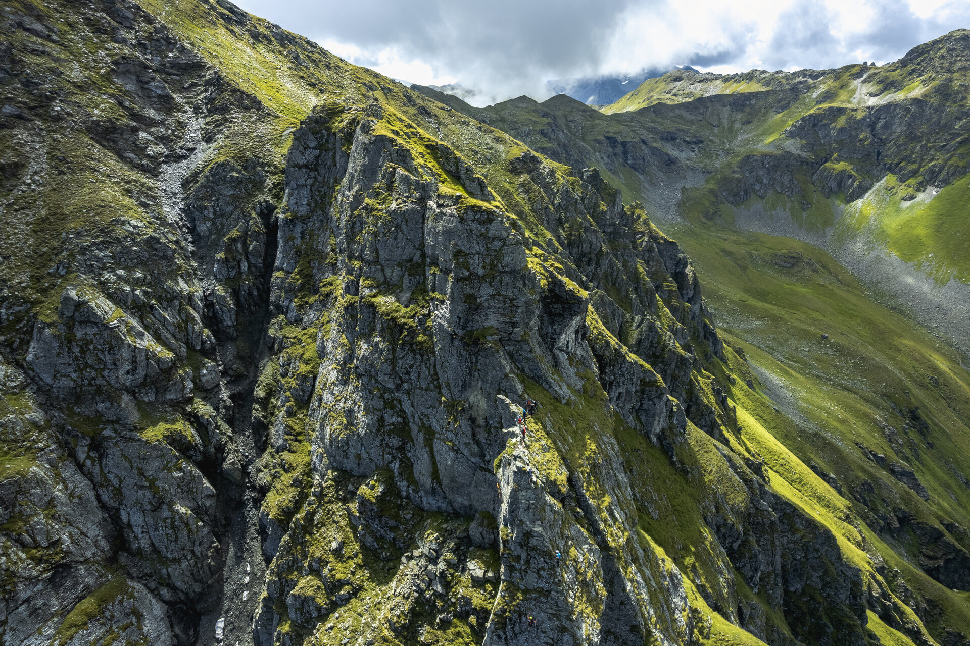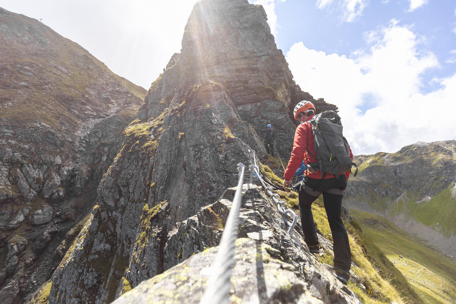 Gaschurn Klettern? An der Madrisella? Solche Fragen drängen sich bei diesem Berg geradezu auf, zählt er doch zu den am stärksten frequentierten Erhebungen im Nova-Gebiet, weil über einen Höhenweg denkbar einfach erreichbar. Die Madrisella (2.466 m) hat jedoch auch eine Nordwand. Schroff und abweisend ragt der Fels in den Himmel. Es scheint fast, als ob er wenigsten auf dieser Seite seine Ruhe haben möchte. Doch damit ist es seit dem vergangenen Jahr vorbei. Die Bergführer der Silvretta Montafon, Manfred Sprung und Martin Marinac, haben die knackigen Wände der Madrisella durch einen Klettersteig zumindest etwas entschärft, denn auf den 450 Höhenmetern nach oben gibt es im Schwierigkeitsgrad C/D noch genug Herausforderungen zu bewältigen, vor allem, wenn es 150 Höhenmeter senkrecht aufwärtsgeht. Auf jeden Fall ist es Sprung und Marinac mit dieser Anlage gelungen, das Angebot im Land um ein echtes Schmuckstück aufzuwerten.