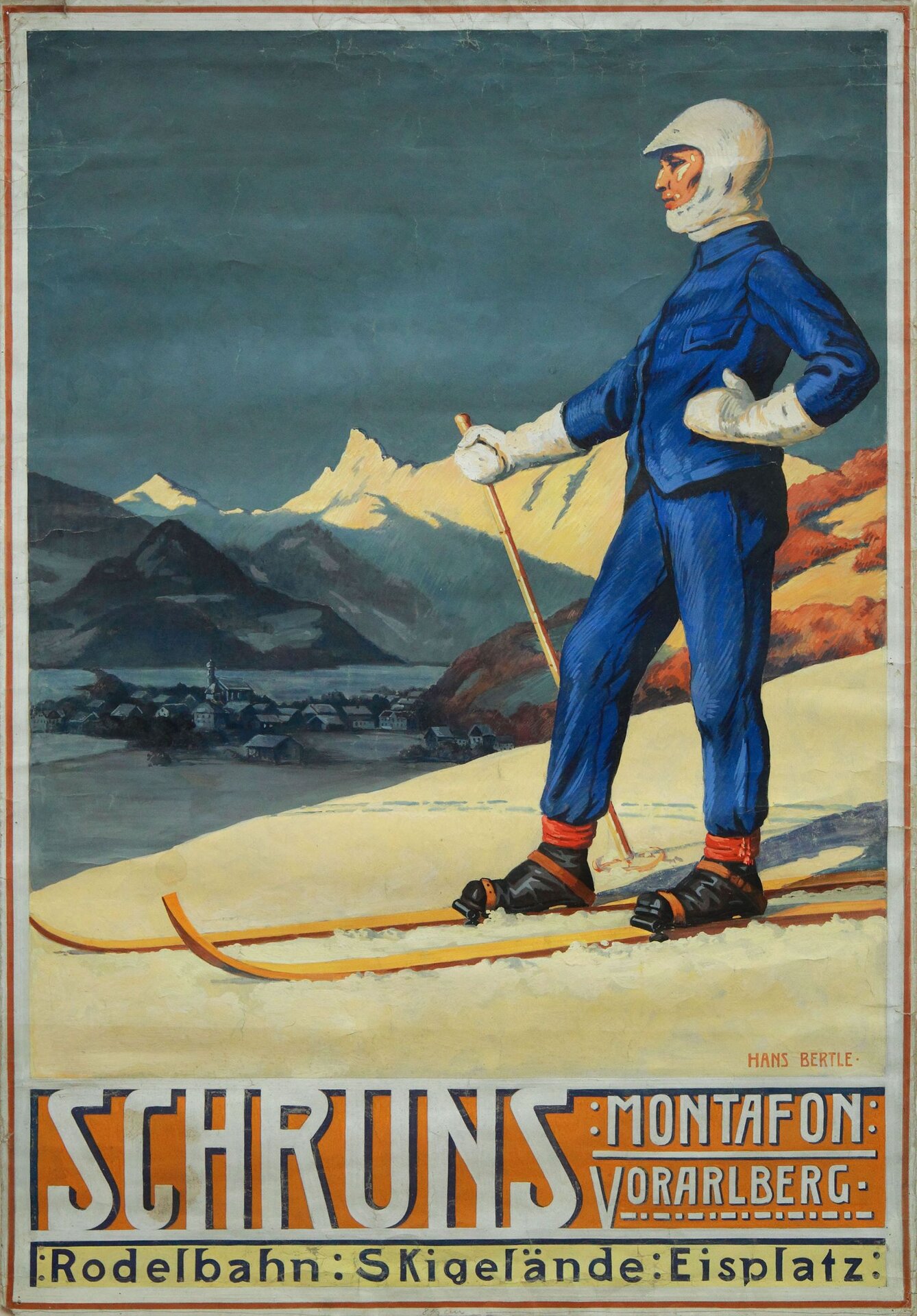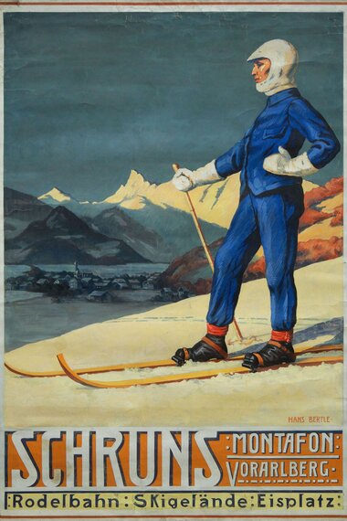Ein Meilenstein in der touristischen Werbung für die Wintersaison war 1909 die Herausgabe des ersten "Winter-Prospektes" für das Montafon. Dabei entstand mit dem Motiv "Skifahrer", mit dem in erster Linie Schruns beworben wurde, das erste historische Werbeplakat des Tals. Dieses wurde von dem bekannten Montafoner Künstler Hans Bertle gestaltet. Anlass dafür waren die "1. Vorarlberger Schimeisterschaften", die 1910 am Golm veranstaltet wurden.