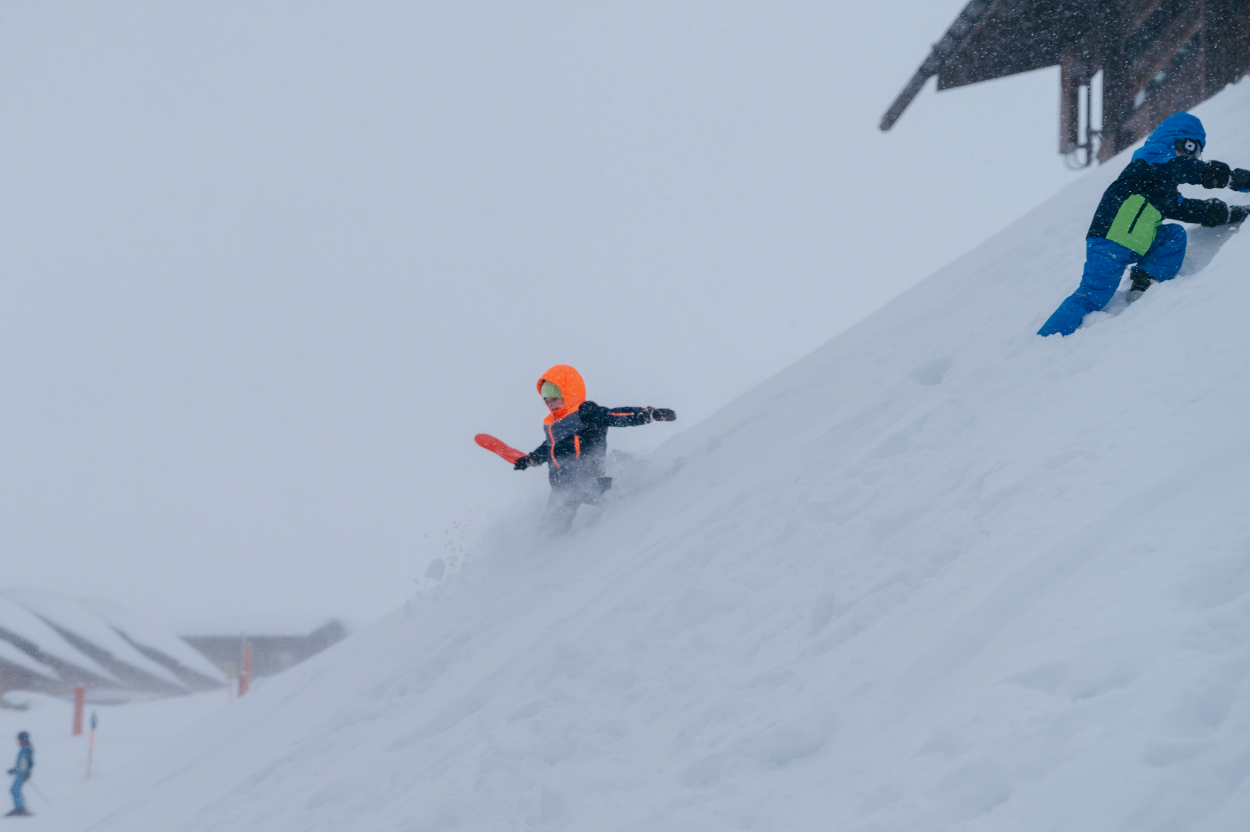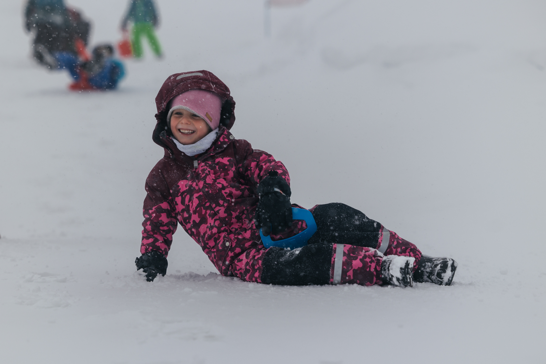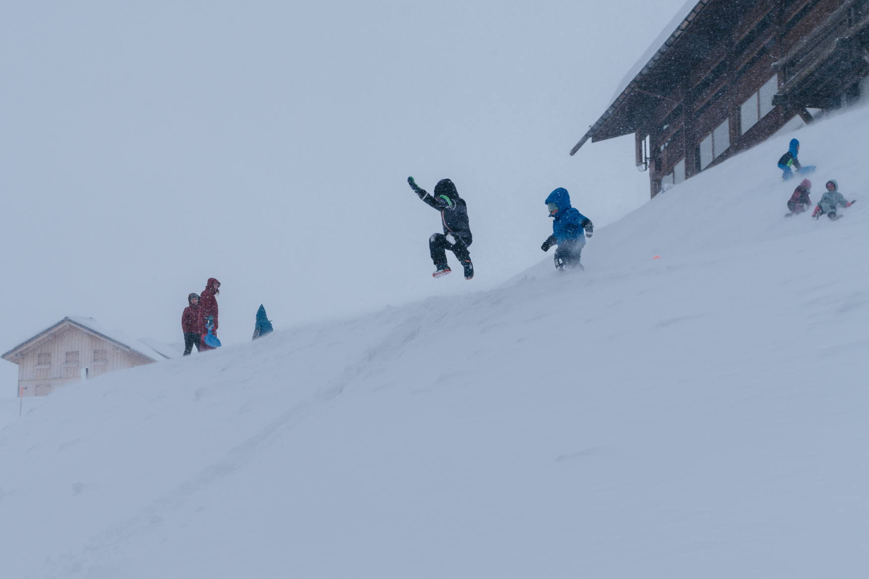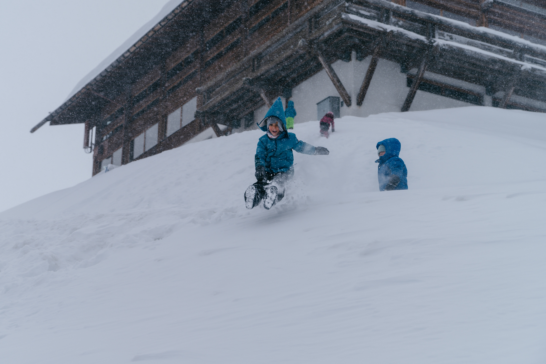 Leopold rutschte vergnügt den Hang hinunter. „Der Wind ist so kalt, da gefriert einem ja das Blut in den Lippen“ rief er. Und schon war er wieder weg und rutschte erneut. Gut ausgestattet mit Skibrille, machte Romeo einen Schneeengel in den frische Pulverschnee. Auch Laurin und Nikolai lachten ausgelassen, als sie den kleinen Schneehügel hinunterhüpften. Sie fühlten sich frei und leicht, als sie den Schnee unter sich sprüren konnten. Mit roten Wangen und strahlenden Augen kletterten sie jedes Mal wieder hoch, um erneut den Hügel hinunterzusausen.