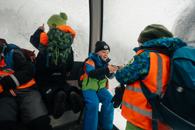Auf den Hochjoch ging’s mit der Zamang Bahn. Die Kinder lachten und jubelten, während die Bergbahn langsam den steilen Hang hinauffuhr. Es war ein aufregendes Abenteuer, das die kleinen Passagiere voller Freude genießen konnten.
