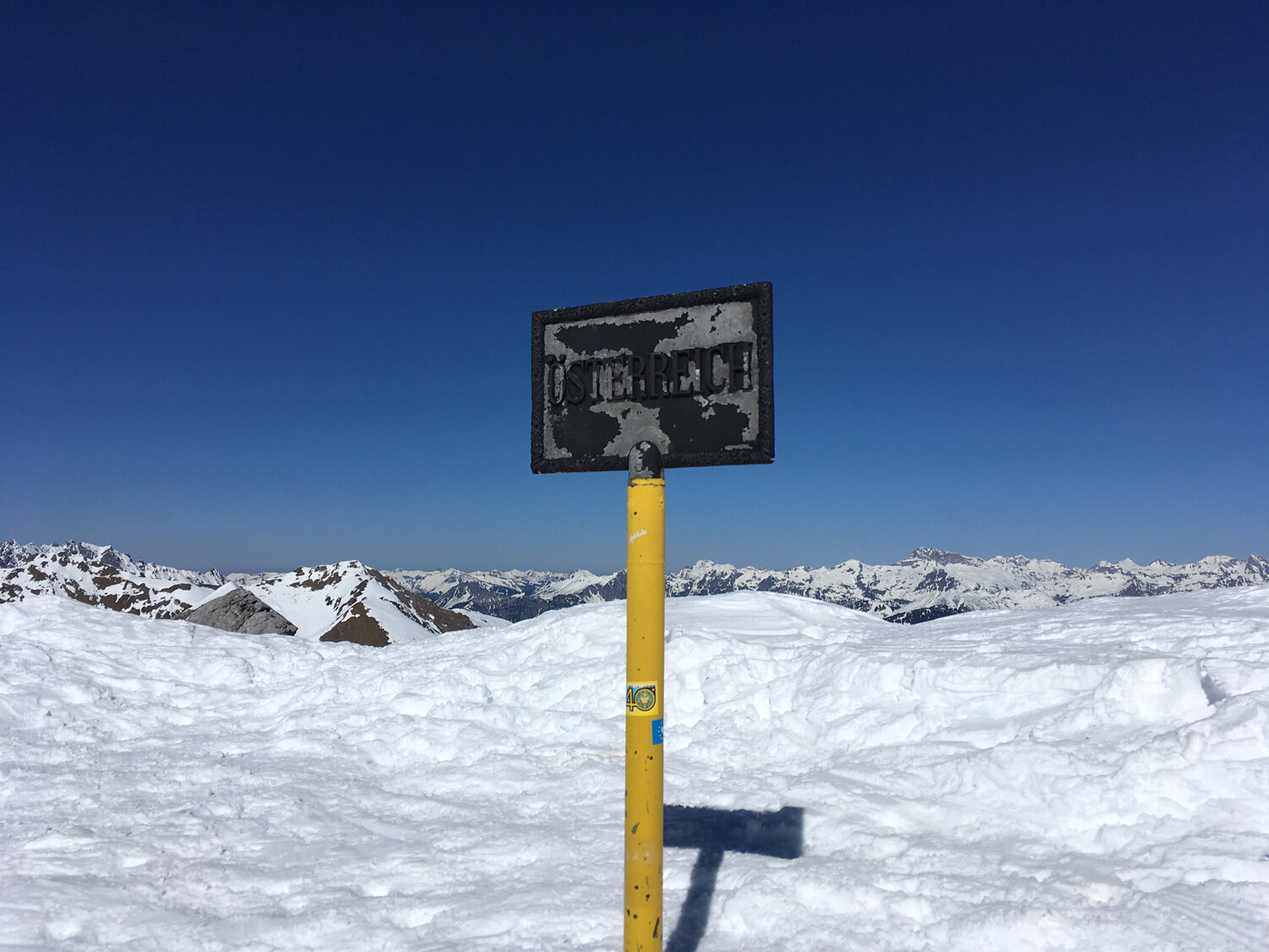 Wir waren schon fast oben angekommen, da passierte ein kleines Malheur: Dirk wurde von einer plötzlichen Windböe sein geliebter Hut vom Kopf gerissen und in einen Hang Richtung Gargellen geweht. Was nun? Hinterherjagen oder nicht? Haben wir die Zeit dafür? Da es ein Andenken aus Chamonix war, kam nur Hinterherjagen in Frage. Doch zu lange durfte das nicht dauern, schließlich hatten wir noch eine gute Strecke vor uns. Mit Hilfe unserer Anfeuerungsrufe gelang die Mission Hutrettung in Rekordzeit. Puh, noch mal Glück gehabt.