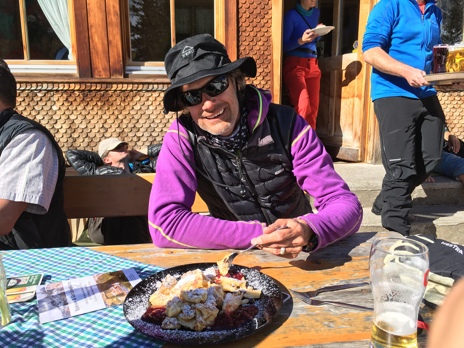 Eine gute Stunde, diverse Kaltgetränke und einen leckeren Kaiserschmarrn später, wartete „nur“ noch die 1.000 Höhenmeter und etwa 8 Kilometer lange Talabfahrt durchs wunderschöne Gauertal und die anschließende Skiroute Nr. 23 nach Tschagguns auf uns. Ein Genuss für die müden Beine.