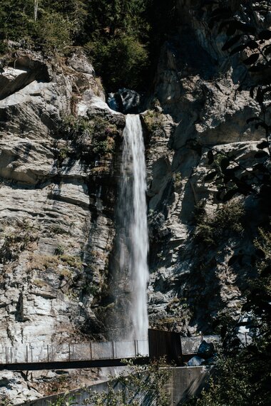 Retour machen wir einen Abstecher zum Balbier-Wasserfall. Dieses Wander-Highlight saust 17 Meter in die Tiefe und mit der netten Brücke davor sind die vielen Wasserspiele ein tolles Fotomotiv. Wir schießen ein paar Erinnerungen und starten unsere letzte Etappe. Nach insgesamt drei Kilometern samt 63 zurückgelegten Höhenmetern kehren wir schlussendlich wieder nach Gortipohl zum Ausgangspunkt zurück. Als gemütlichen Wanderweg kann ich den Montafonerhausweg für einen längeren Spaziergang mit Sehenswürdigkeiten wie den prächtigen alten Montafonerhäusern, schönen Aussichten auf die Vorarlberger Bergwelt und netten