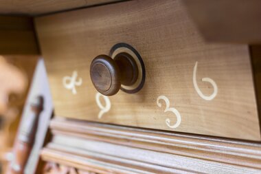 Die Zeiten, in denen die Tische in massiver Bauweise in Vollholz hergestellt wurden, sind vorbei beziehungsweise eine Frage der Finanzierung. Das Furnier hat das Vollholz abgelöst. Unter Furnieren versteht man dünne Blätter aus echtem Holz, die auf eine Spanplatte oder auf Sperrholz aufgeleimt werden. Fehlende Lagerplätze (für die Trocknung der Hölzer) und die serielle Anfertigung spielen neben dem günstigeren Preis eine entscheidende Rolle in dieser Entwicklung. Dass sich Möbel weniger „verziehen“, ist nebenbei noch ein Vorteil der neuen Bauweise dieser Tischplatten. Dabei wurde immer schon „vorgegaukelt“, gab es doch anstelle der eingelegten Hölzer auch Vortäuschungen von Intarsien durch Malerei. Der Einsatz von Lackierungen ist ebenfalls ein Produkt jüngerer Zeit, reichte doch früher die einfache Polierung aus.