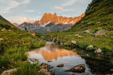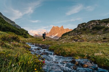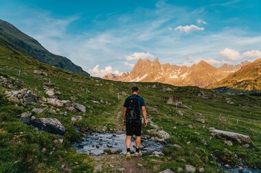 Von der Kristbergbahn folgt man die ersten Kilometer einer Asphaltstraße, die fast parallel zum Litz verläuft und immer wieder wunderbare Blicke auf den Fluss erlaubt. Nach einer Weile verlässt man die Asphaltstraße und den Fluss und schlängelt sich über einen recht steilen Schotterweg den Berg hinauf. Dabei kommt man zwei sehr schönen Aussichtspunkten vorbei, die noch einmal eine ganz andere Perspektive auf den reißenden Strom erlauben. Bei Kilometer 9 bietet sich auf einem Hochplateau mit der Unteren Gaflunaalpe eine perfekte Möglichkeit für eine ausgiebige Pause.