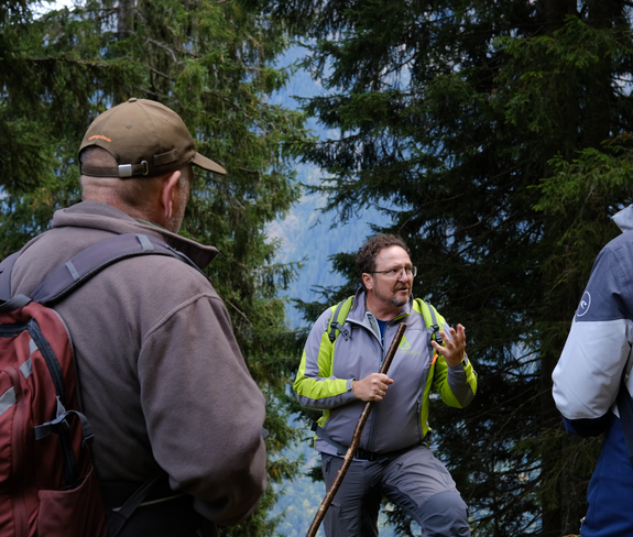 Die Teilnehmenden lernten auch, wie wichtig die Jagd für das Gleichgewicht im Wald ist. „Der Wald zeigt, ob die Jagd stimmt“, erklärte Alexander. Ohne eine angemessene Wildbewirtschaftung könnten junge Bäume nicht nachwachsen, was langfristig den Schutzwald gefährden würde.