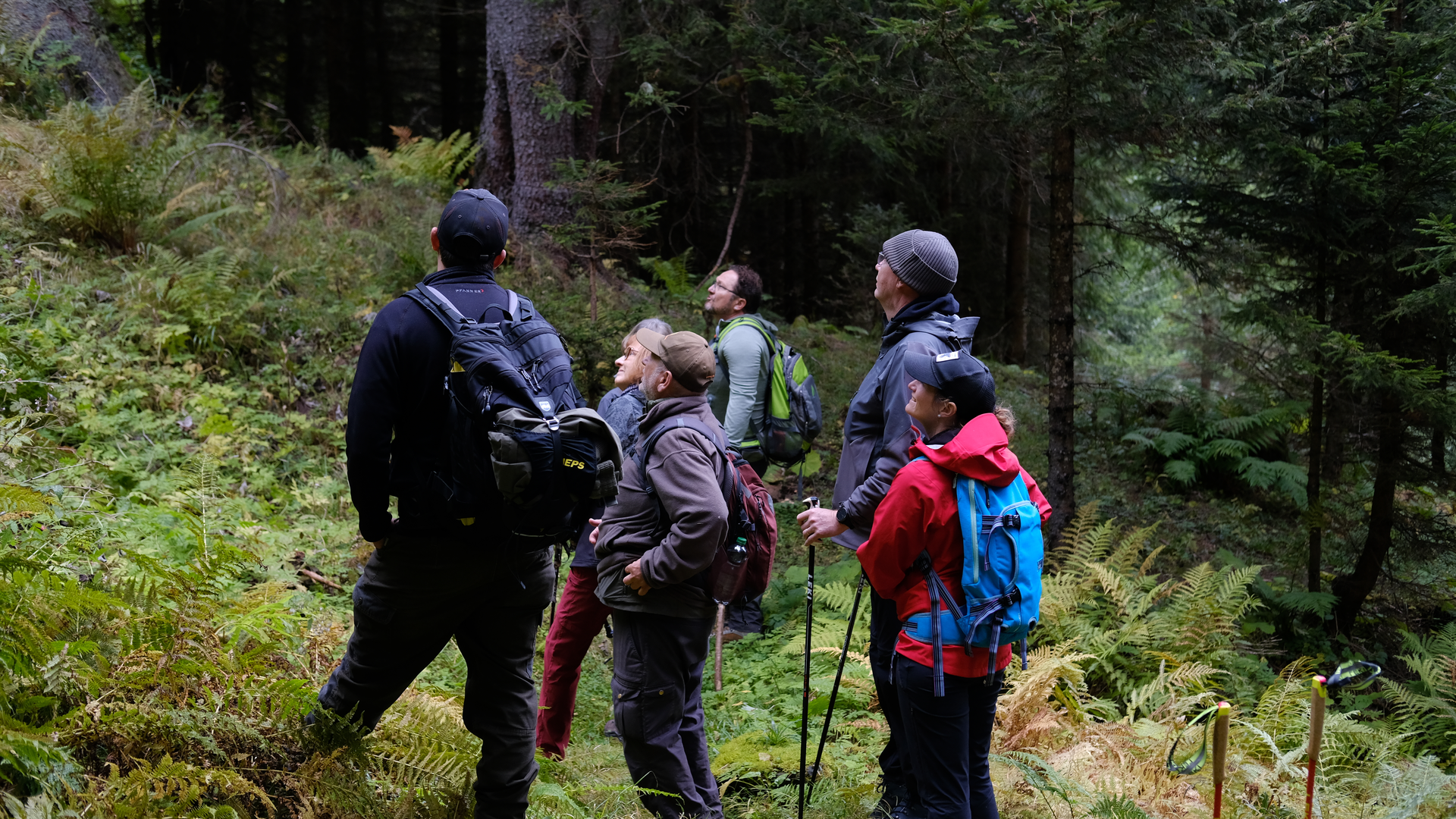 Der Tag begann um 08.30 Uhr bei kühlem Herbstwetter in Tschagguns. Begleitet von Alexander Stoiser, einem erfahrenen Förster, der seit vielen Jahren für das Flächenwirtschaftliche Projekt Maurenwald verantwortlich ist, führte uns die Wanderung durch dichte Waldstücke und offene Flächen.