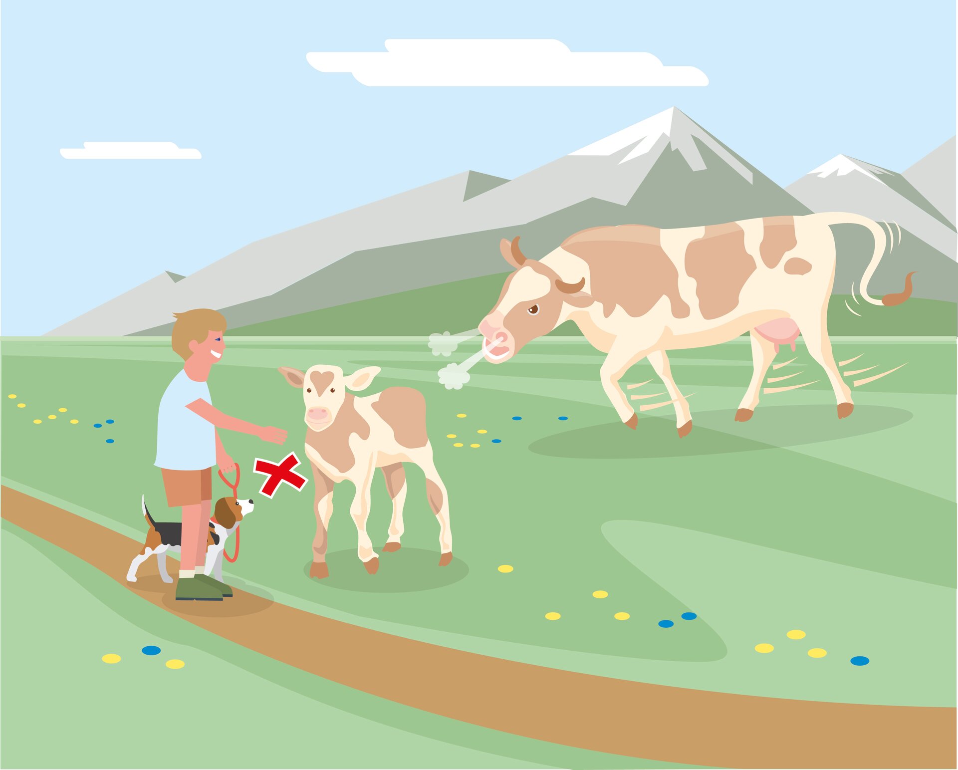 • 1. Kontakt zum Weidevieh vermeiden, Tiere nicht füttern, sicheren Abstand halten!