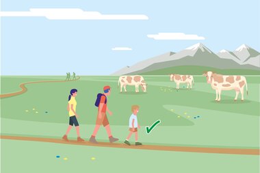 • 7. Bei Herannahen von Weidevieh: Ruhig bleiben, nicht den Rücken zukehren, den Tieren ausweichen!