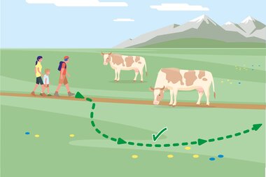 • 6. Wenn Weidevieh den Weg versperrt, mit möglichst großem Abstand umgehen!