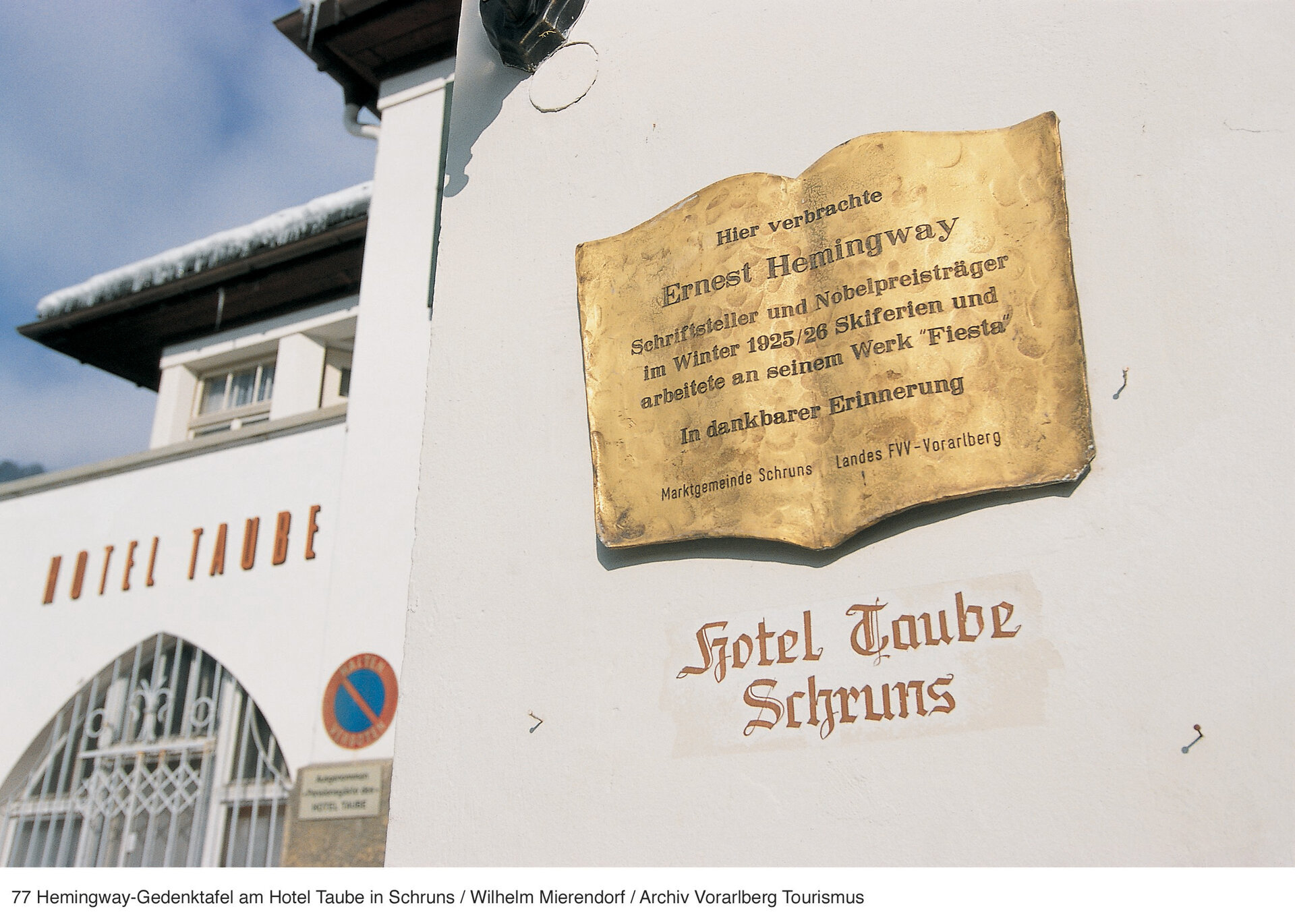 Dabei war es wohl die inspirierende Naturkulisse, die das Tal so beliebt machte. Der wohl bekannteste unter ihnen ist der US-amerikanische Schriftsteller Ernest Hemingway, der in den 1920er Jahren zwei Winter mit seiner Familie im Hotel Taube in Schruns verbrachte. Seine Zeit im Montafon dienten dem späteren Literaturnobelpreisträger in mehreren seiner Werke als Inspiration und Hemingway verarbeitete sie auch in seinen Bestsellern, so zum Beispiel in „Schnee über dem Kilimandscharo“ und „Paris – ein Fest fürs Leben“.