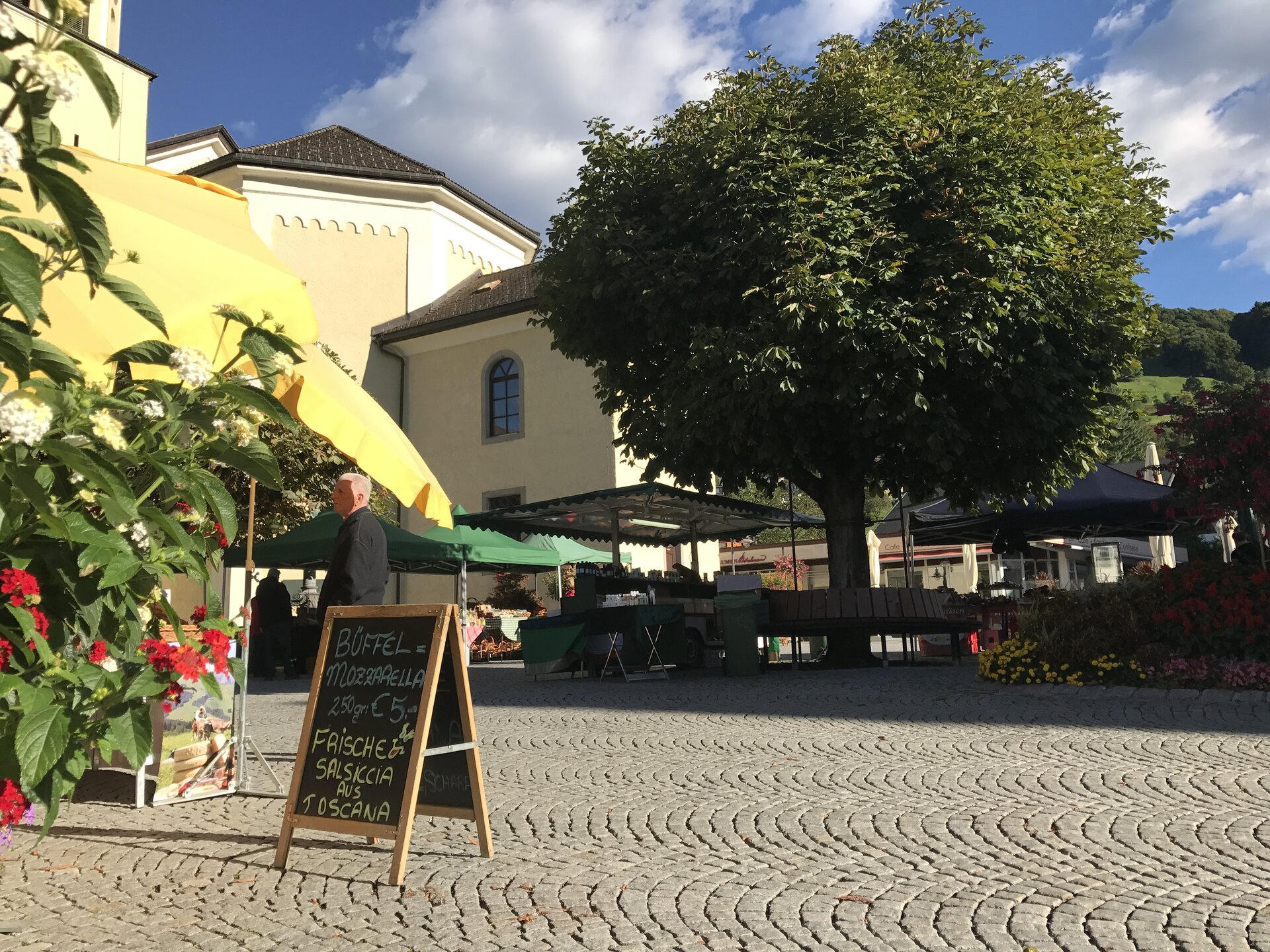 Die Fußgängerzone mit dem Kirchplatz ist für die Schrunser noch heute der zentrale Ort der Begegnung und des Austausches. Hier finden regelmäßig Märkte wie der Italienische Markt (Mercato & Fiesta Italia), der Sommermarkt, aber auch der beliebte Silbriga Sonntig Markt statt, die jedes Jahr unzählige Besucher aus Nah und Fern nach Schruns locken.