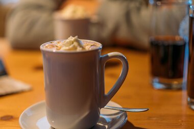 Die Lindauer Hütte ist ein tolles und lohnendes Ziel nach einer wunderbaren Winterwanderung. Die gemütliche Stube lädt zum Beisammensitzen ein und wir stärken uns mit einem Bergsteigeressen und einer heißen Schokolade (natürlich mit Sahne). Draußen pfeift der Wind und wir sitzen trocken und warm in der Hütte – herrlich, so lässt es sich aushalten.