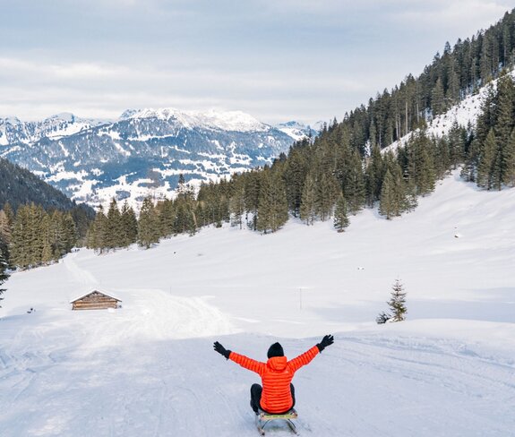 Die Kombination zur Lindauer Hütte zu wandern und mit dem Schlitten wieder hinunter zu fahren, hat uns super gefallen.