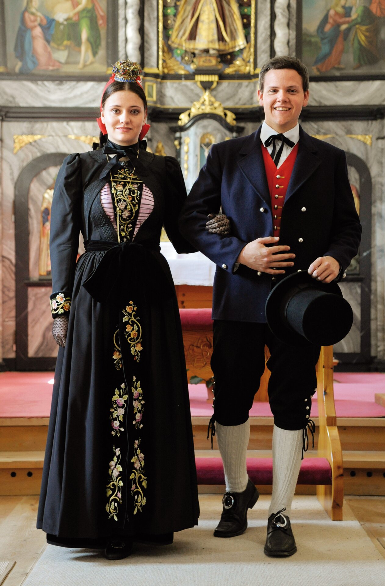 Die Montafoner Festtagstracht besticht durch feinen, schwarzen Wollstoff und aufwendige Stickereien.