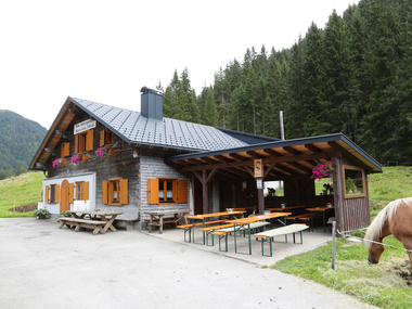 Nach einer kurzen Rast beim Wiegensee verläuft der Weg weiter bis zum Inner Tafamuntmaisäß. Hier findest Du das Alpstöbli für eine kleine Stärkung.