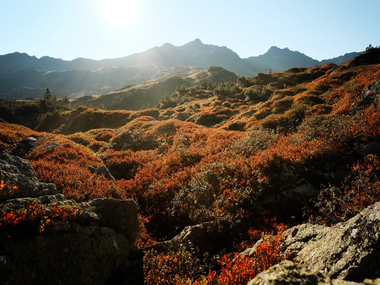 Hinter der Bergstation der Kristbergbahn beginnt der 1 1/4 stündige Aufstieg durch den Gebirgswald, 1/2 Std. weiter, leicht ansteigend durch immer lichteren Wald über den Bergrücken zwischen Felsblöcken hindurch ist das Gipfelkreuz des Muttjöchle (2074 m) erreicht. Gigantischer Ausblick auf die Rätikon-, Verwall-, Silvretta Gebirge sowie die Lechtaler Alpen. Vom Gipfel kurz abwärts, dann flach weiter in Richtung Sonnenkopf (Bergrestaurant). Vom Sonnenkopf (Wegweiser beachten) zur Oberen - Unteren Wasserstubenalpe bis zur Jagdhütte. Beim Wegkreuz rechts über die Forststraße vorbei am Aussichtspunkt Wild Ried und der Kneippanlage Siebenbrünnele bis zur Bergstation der Kristbergbahn. Besonders im Herbst eine wunderbare Wanderung.