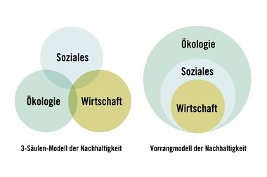 Das Vorrangmodell besagt, dass die Bereiche Ökologie, Soziales und Ökonomie nicht grundsätzlich gleichgestellt sind, sondern dass es ohne Umwelt und Natur keine soziale Stabilität gibt und ohne soziale Stabilität keine ökonomische Stabilität. Wenn sich die verschiedenen Ebenen der Nachhaltigkeit gegenüberstehen, gewinnt immer die Ökologie, weshalb hier in der öffentlichen Wahrnehmung oft der Fokus liegt. Andersrum ist die ökonomische Stabilität einer Region wichtig, um soziale und ökologische Stabilität vorantreiben zu können. Somit kommt es immer auch auf die Herangehensweise und den Blickwinkel an.
