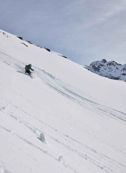 Im Bereich des Matschunertobels erfolgt die Abfahrt in das Garneratal über den unmittelbaren Nahbereich des Sommerwegs. Die südöstlich ausgerichteten Hänge zwischen dem Matschuner Joch, der Versettla und Lifinar/Burg sind jedenfalls zu meiden.