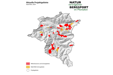 Für ausgewählte Gebiete im Montafon und im Klostertal haben sich Nutzerinnen- und Nutzergruppen, Grundeigentümerinnen und Grundeigentümer sowie Bewirtschaftende auf Bereiche geeinigt, die von Wintersportlerinnen und Wintersportlern zum Schutz von Waldflächen und Wildtieren gemieden werden sollten. Diese so genannten Wald-Wild-Schongebiete sollen sicherstellen, dass Gebiete generell weiterhin für die Ausübung von Wintersport genutzt werden können.