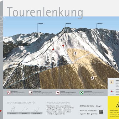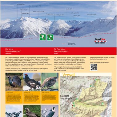 Das gesamte Gebiet - Teile davon liegen im Natura 2000-Gebiet Verwall - hat eine große Bedeutung für unsere heimischen Wildtierarten, insbesondere für Rauhfußhühner wie Birk- und Schneehuhn. Bitte nimm Rücksicht auf die Bedürfnisse dieser störungsempfindlichen Tierarten.