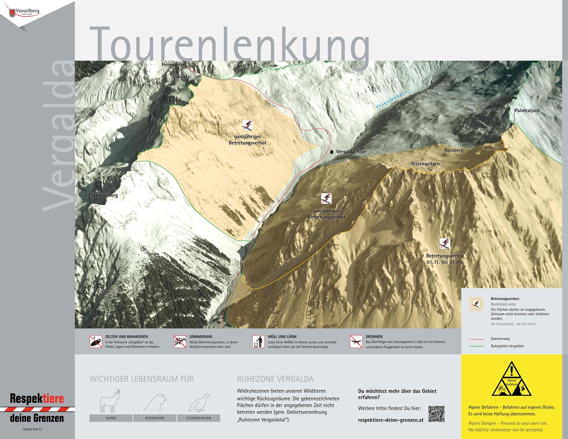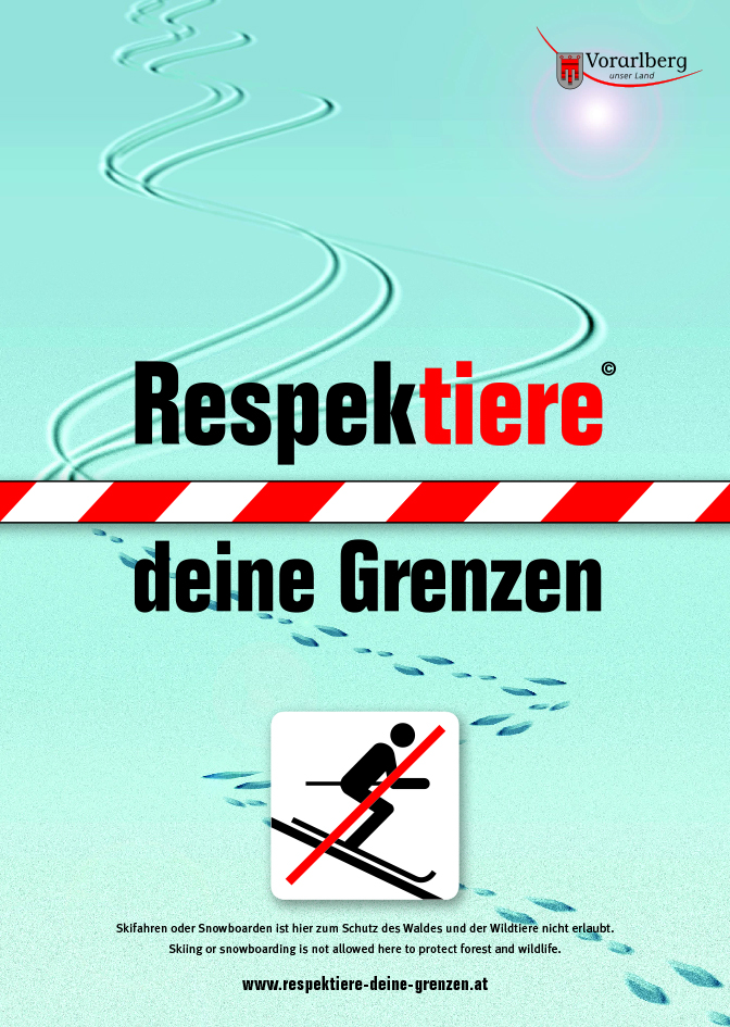 - verordnete Bestimmungen gem. Vorarlberger Jagdgesetz (Wildruhezonen, Jagdliche Sperrgebiete), Gesetz über Naturschutz und Landschaftsentwicklung (Schutzgebiete) sowie dem Bundesforstgesetz (Jungwaldflächen und Skifahren im Wald)