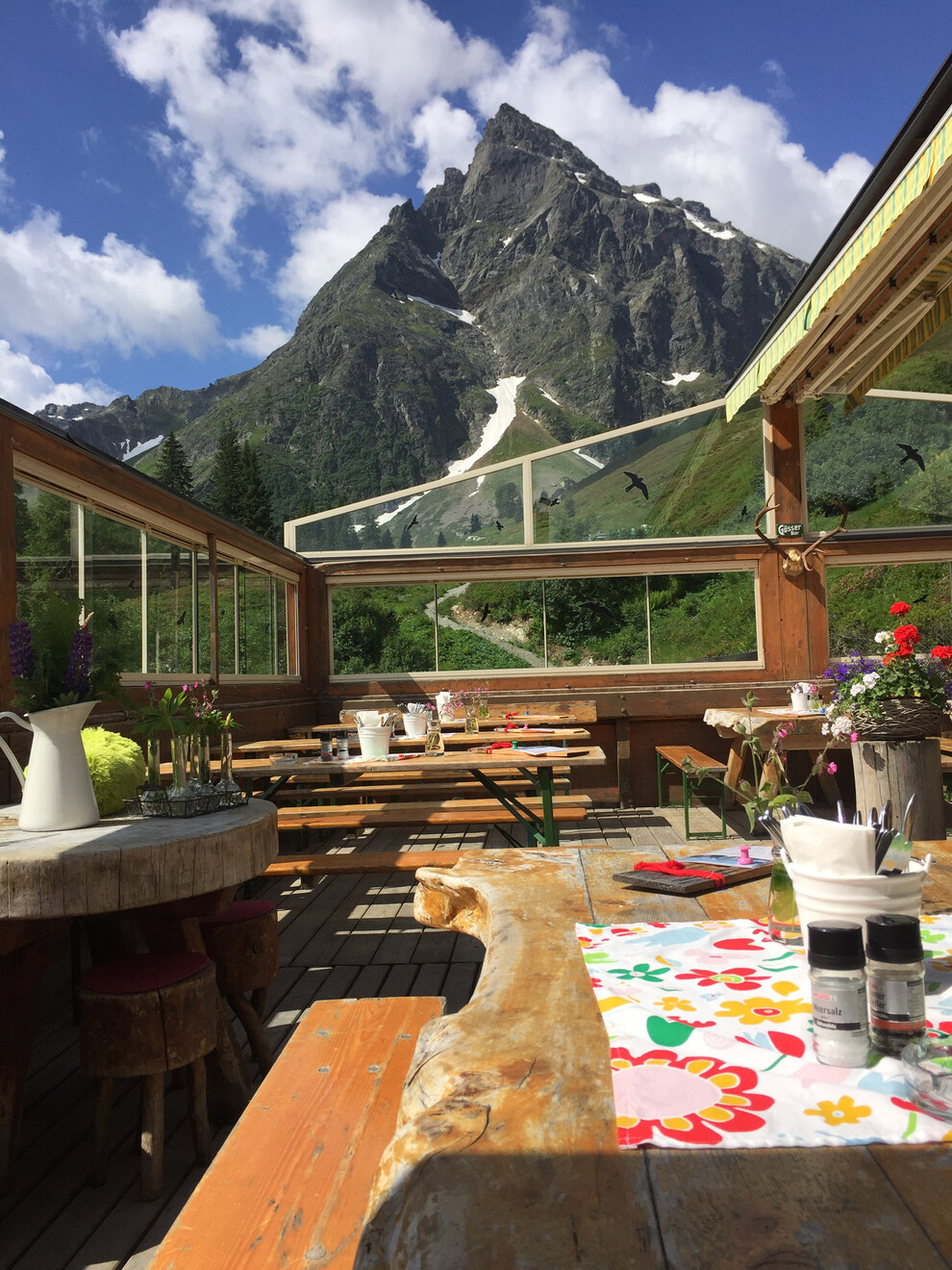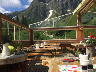 Bedienungsrestaurant, Sonnenterrasse mit Blick auf die schöne Madrisa!