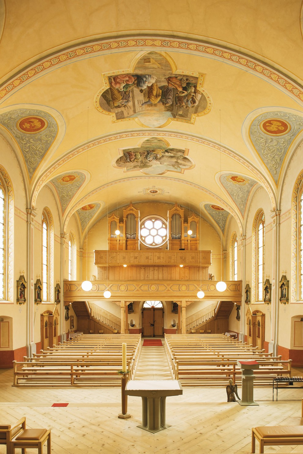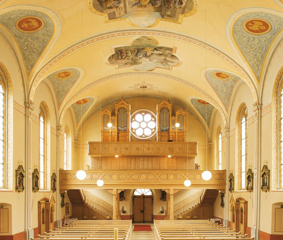 Altar- und Deckenbilder der Schrunser Brüder Franz und Jakob Bertle im späten Nazarenerstil.