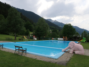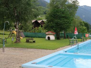 Beheiztes Sport- Kinderbecken mit großer Liegewiese, Kinderspielplatz, Tauchring uvm.