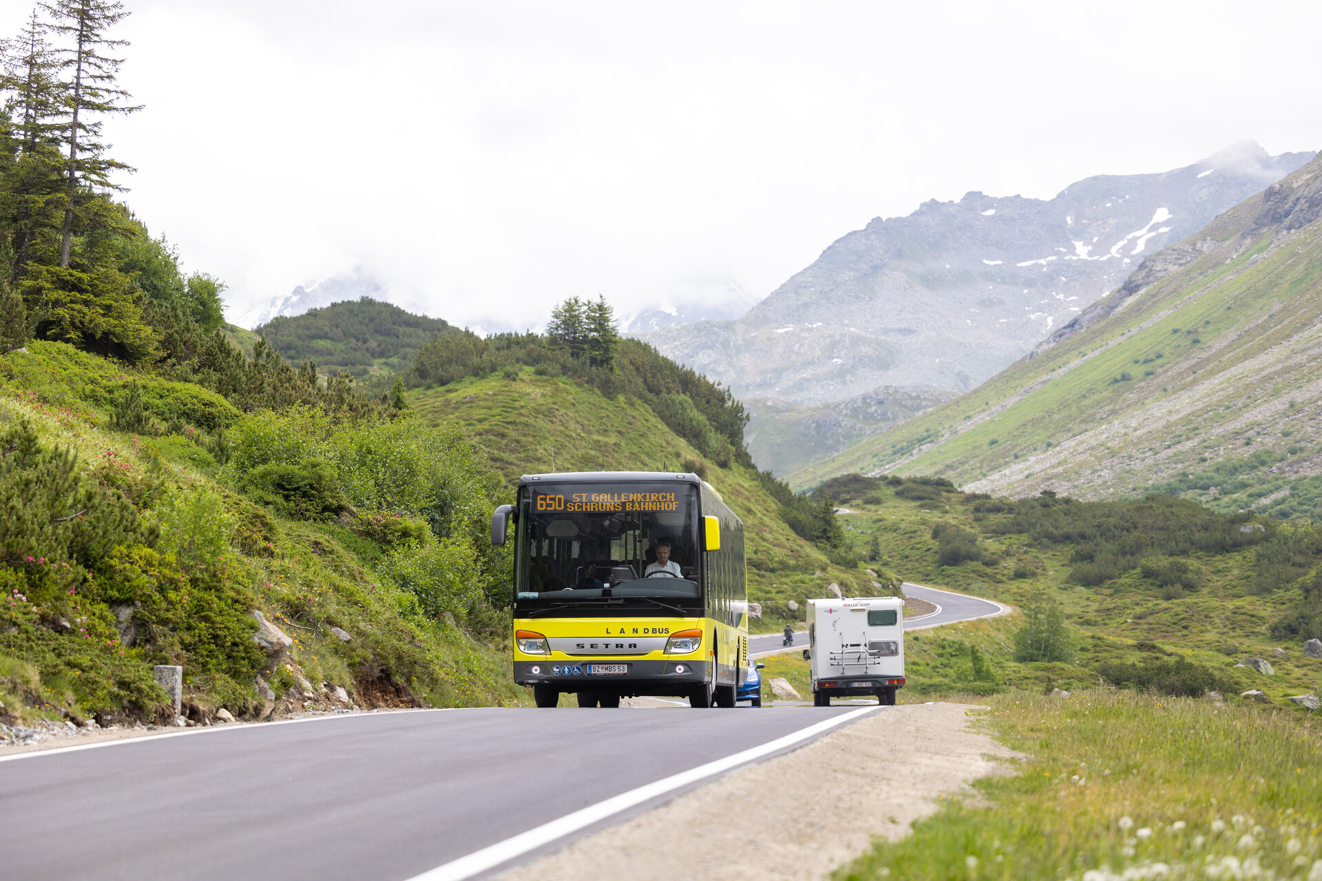 Im Sommer fahren täglich und in regelmäßigen Abständen Busse auf die Silvretta-Bielerhöhe.