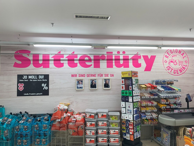 Im Sutterlüty in Schruns findest Du eine große bediente Frischeabteilung (Fleisch, Wurst, Käse) mit b’sundrigen Spezialisten ihres Fachs, sowie mehrmals täglich frisch gebackenes Brot und Gebäck, eine bediente heiße Theke und ein großes Regional-, Bio- und Fairtrade-Sortiment.“